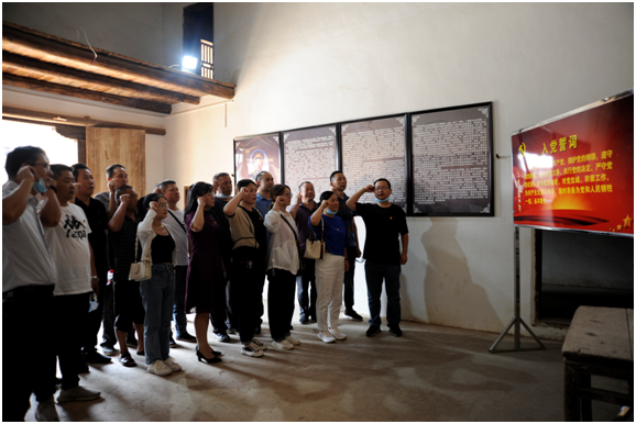 在李聚奎故居大廳,支部書記陳全元帶領(lǐng)全體人員莊嚴(yán)列隊(duì),向李聚奎將軍遺像三鞠躬. 隨后全體黨員面向黨旗,高舉右手,重溫人黨誓詞。跟隨講解員的腳步,黨員們認(rèn)真參觀了李聚奎故居復(fù)原陳列展和生平事跡圖片展。從人黨哲詞、千里尋黨、帶兵打仗到建設(shè)新中國等共同追憶了李聚奎將軍光輝的一生。