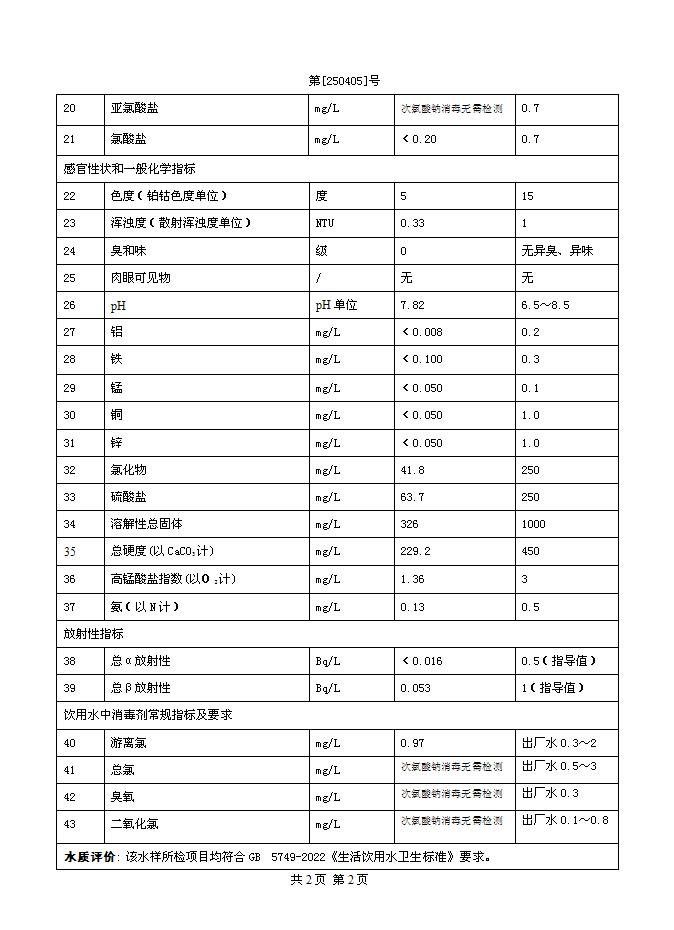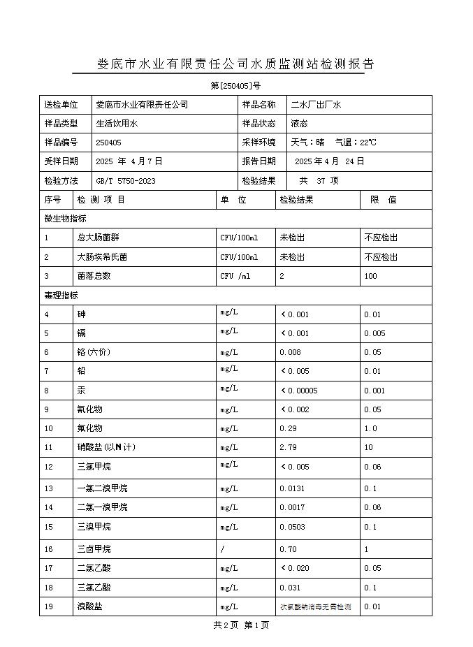 2025年4月二水廠出廠水水質(zhì)公告